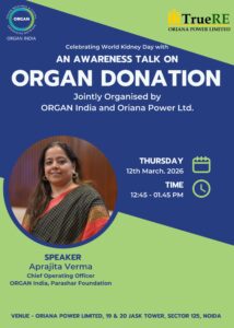 To mark World Kidney Day 2026, ORGAN India collaborated with Oriana Power Ltd., Noida, to conduct a session focusing on organ donation, along with awareness on the prevention of kidney disease. The talk was attended by 22 participants in person and 30 employees who joined online from the company’s other offices. We are grateful to corporates like these who invest in educating their employees on health and other important related subjects.