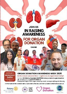 - Rotary E-Club of Organ Donation UK, in partnership with ORGAN India & Team India, supported by Sahauk, proudly hosted a Celebration and Awareness Event as part of UK Organ Donation Awareness Weekon Wednesday, 24th September 2025 (15:00–16:30 BST | 19:30–21:00 IST).