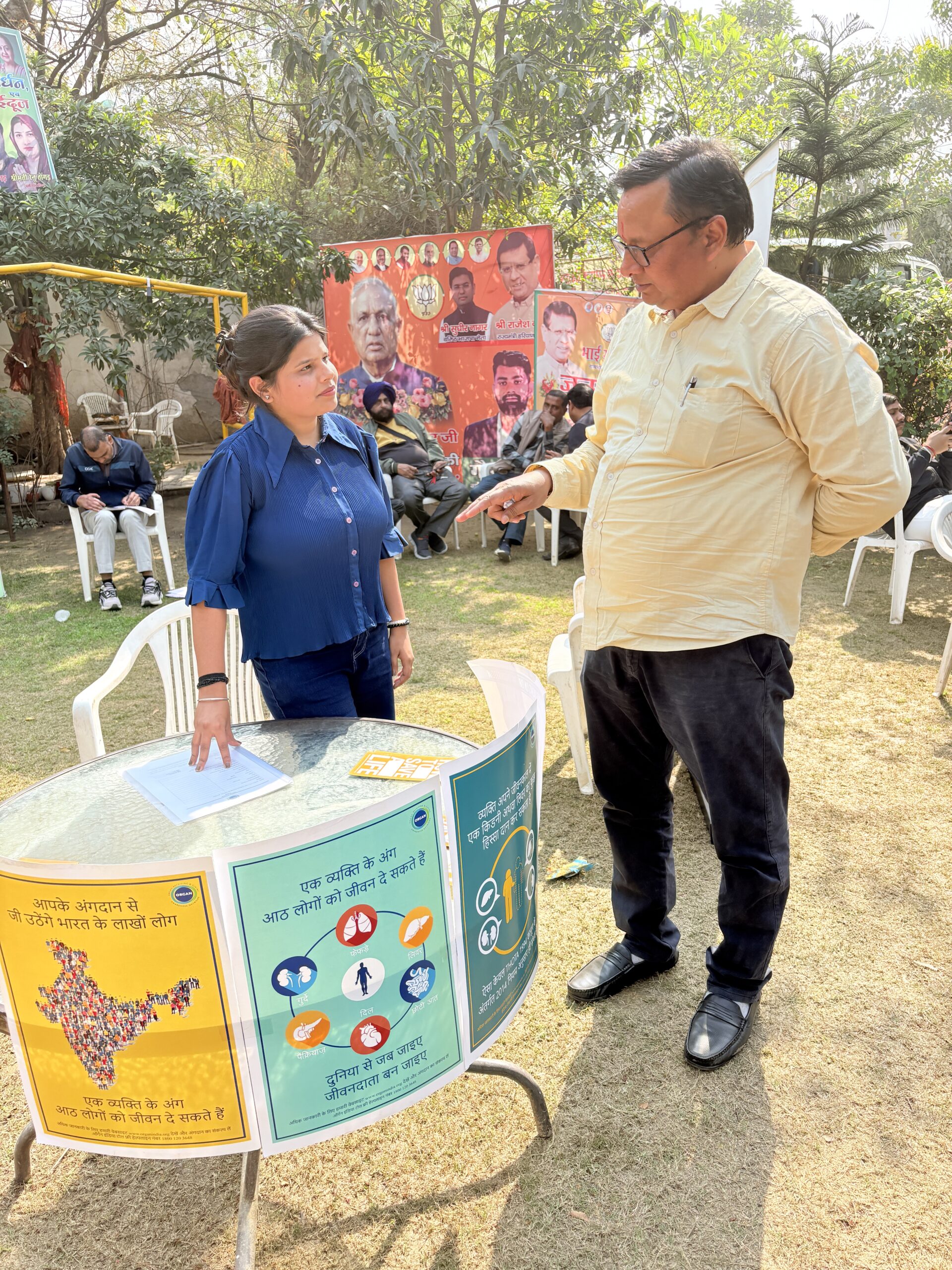 In addition to the awareness talk, ORGAN India set up a dedicated stall at the camp. Visitors stopped by to learn more, collect informational material, and share their details to support the cause of organ donation. The stall became a key point of engagement throughout the day.