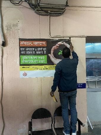 On 10th February 2025, under the supervision of Arbaz, informative IEC (Information, Education, and Communication) materials on organ donation were installed at Civil Hospital, Sector 10, Gurgaon. The display aims to educate patients, visitors, and staff about the importance of organ donation, how one donor can save multiple lives, and the process of pledging. This initiative is part of ongoing efforts to increase community awareness and encourage donor registrations at healthcare facilities.