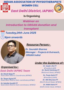 On 24th June 2026, an online awareness talk on organ donation was conducted in collaboration with the Indian Association of Physiotherapists (IAP) and the Indian Association of Physiotherapists – Women Cell (East Delhi Unit). The session was attended by around 90 physiotherapists and was led by Dr. Sourabh Sharma from ORGAN India. Dr. Sharma provided an in-depth overview of organ donation and transplantation, covering key aspects such as brain death, donor registration, and legal procedures. The session concluded with an engaging Q&A, where participants’ queries were addressed by Dr. Sharma.