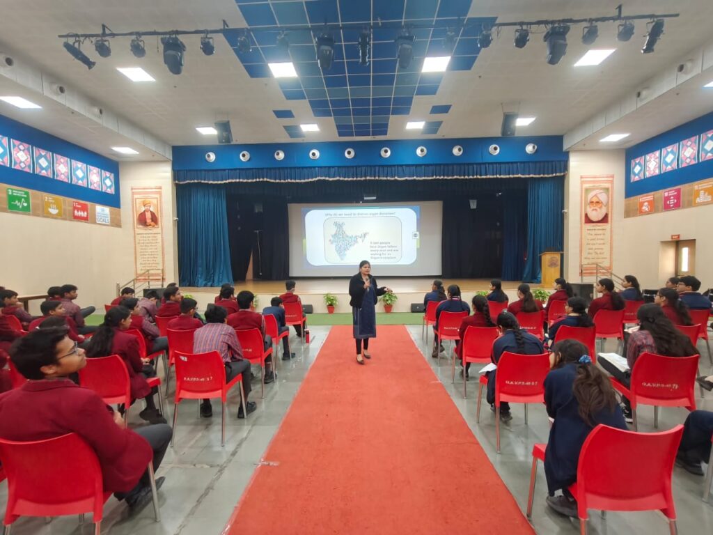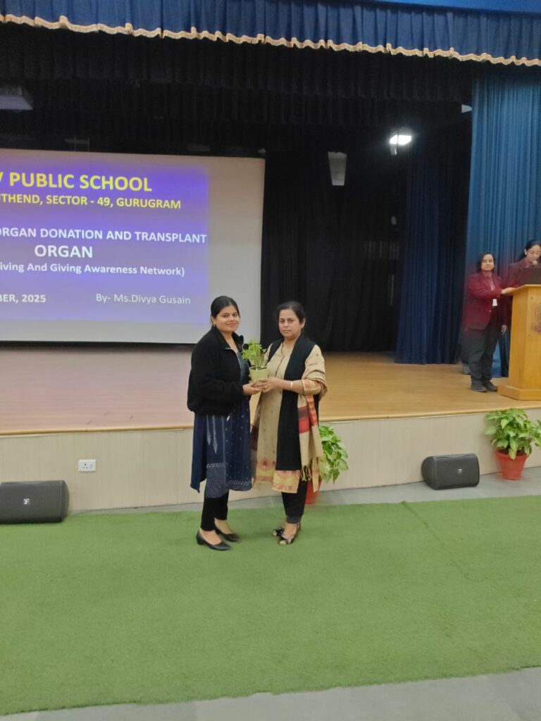A talk on Organ Donation was conducted by Ms. Divya from ORGAN India at DAV Public School, Sector-49, Gurgaon. The session was attended by 415 students and teachers. Ms. Divya delivered a clear and informative presentation on the importance of organ donation and addressed common doubts and misconceptions.